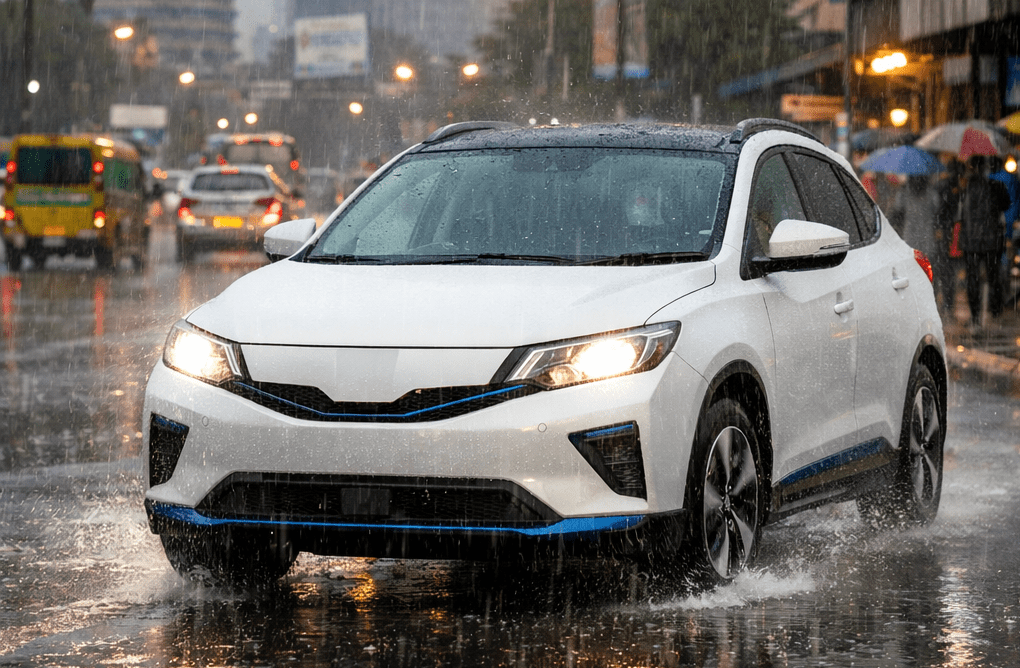 In normal rain, electric cars are not at a disadvantage. They handle wet conditions much like petrol and diesel vehicles. The bigger issues remain road drainage, surface condition, and how carefully the driver reacts to the weather.